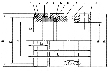 6、動(dòng)環(huán)座 7、推環(huán) 8、彈簧 9、彈簧座